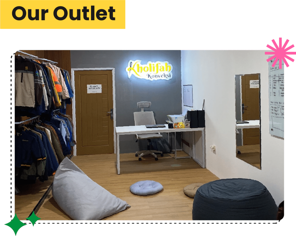 Seluruh proses — dari desain hingga jahit — dikerjakan di satu atap agar hasilnya konsisten dan siap dikirim ke seluruh Indonesia hingga luar negeri.